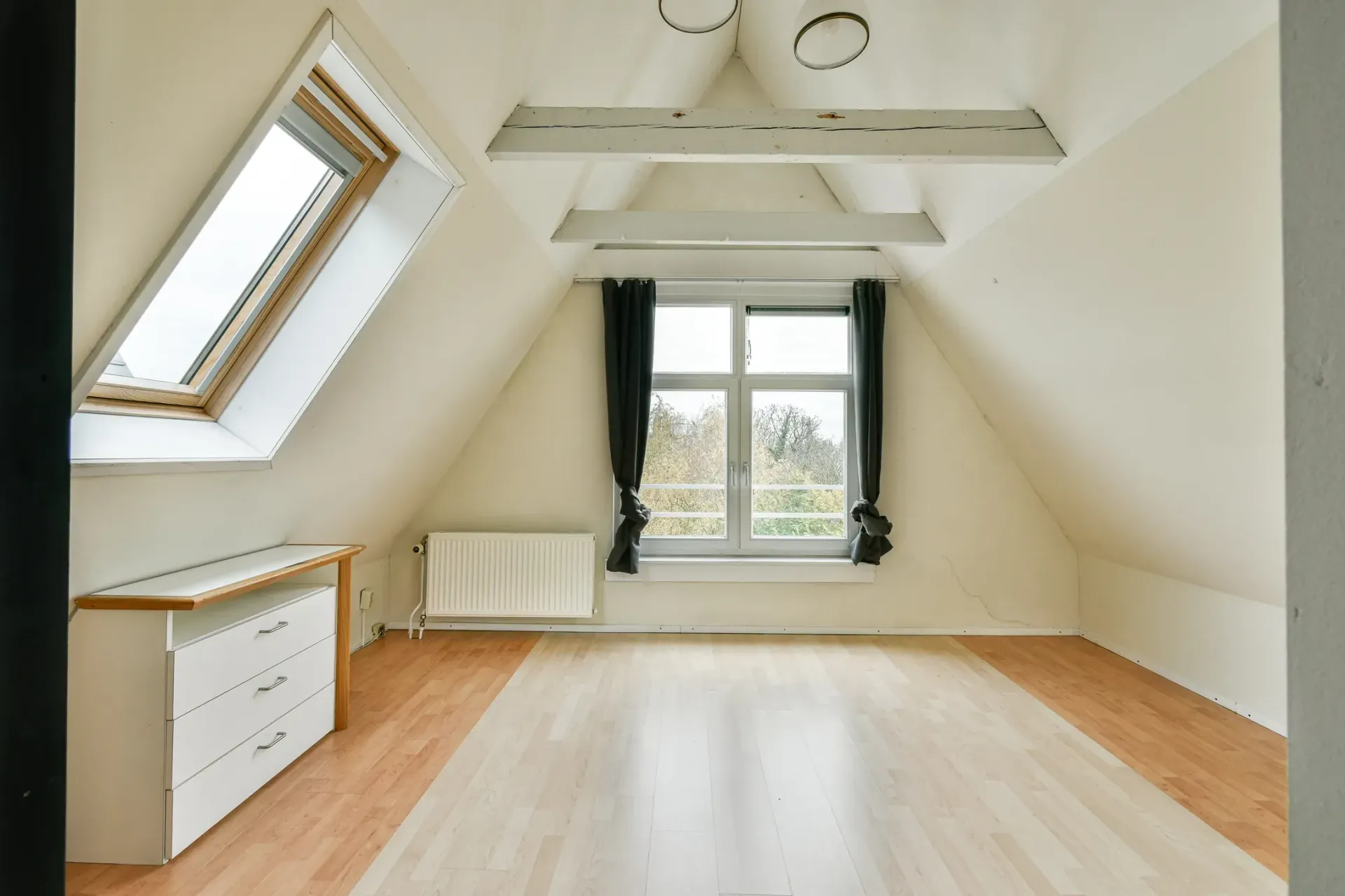 De woning beschikt daarnaast over een zolderkamer die reeds met vergunning is omgezet naar woonruimte. Momenteel is deze bereikbaar via het algemene trappenhuis, maar kan eenvoudig worden toegevoegd aan het appartement door het realiseren van een interne trap. Ideaal als tweede slaapkamer, werkkamer of atelier.