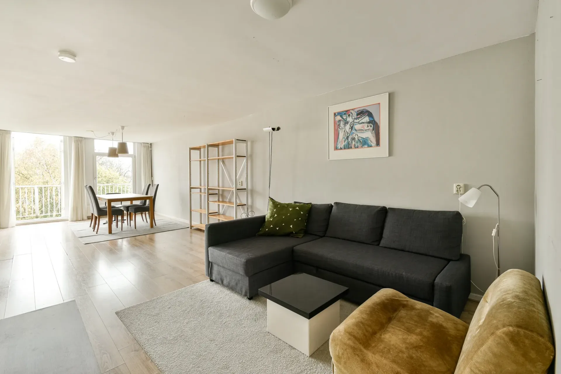 Via het verzorgde trappenhuis bereikt u de woning op de vierde verdieping. De lichte woonkamer aan de achterzijde heeft grote ramen en biedt toegang tot het royale balkon op het zuiden, waar u ochtend-, middag en avondzon volop meepakt.