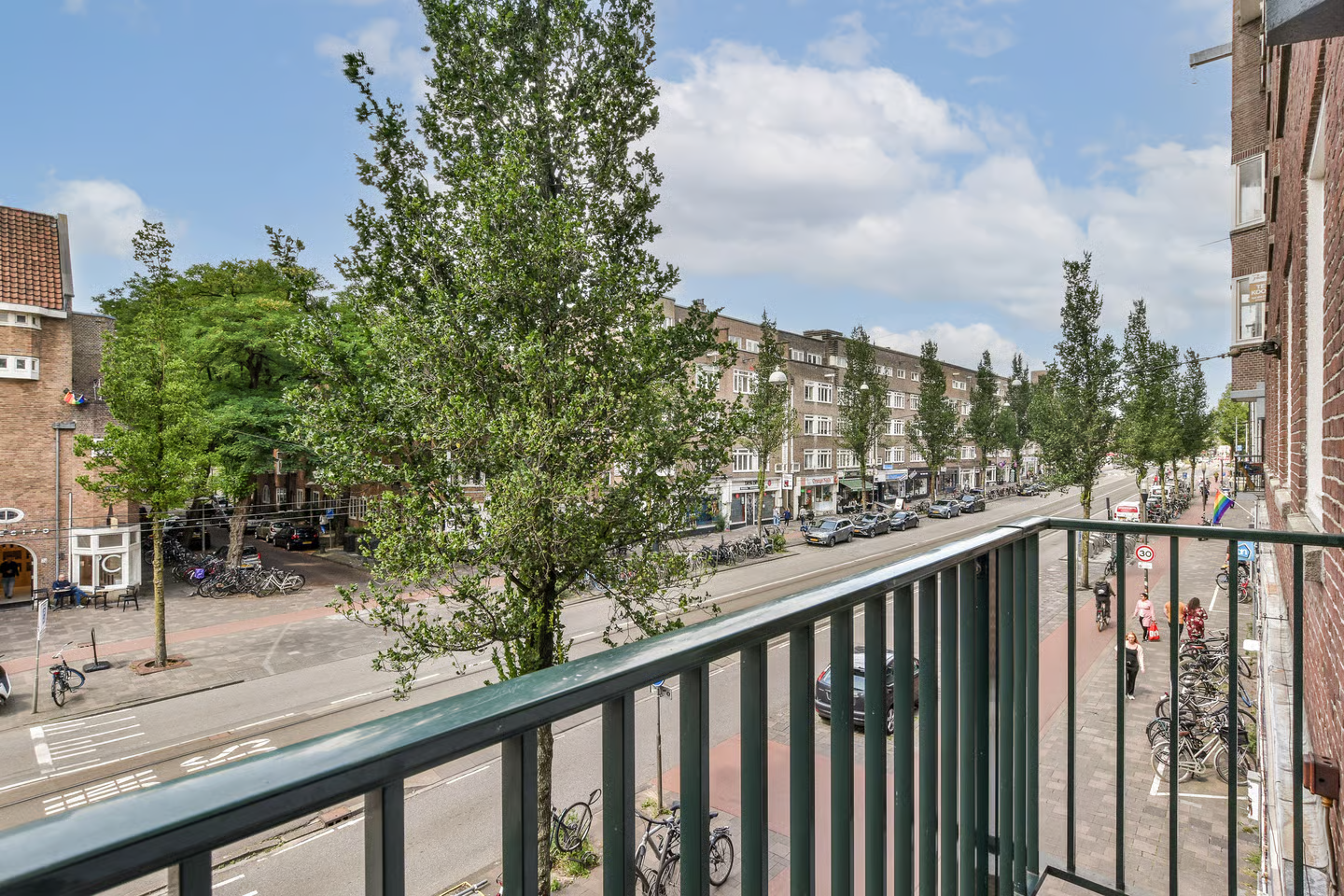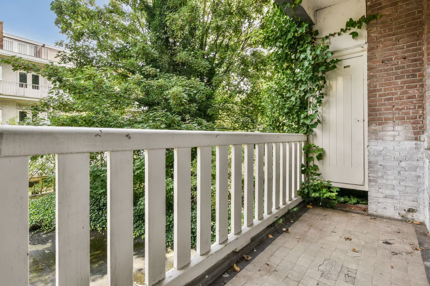 De woning beschikt over twee balkons: een kleiner balkon aan de straatzijde en een ruimer balkon aan de achterzijde, ideaal voor ontbijt in de ochtendzon of ontspannen in de namiddag. Beide buitenruimtes bieden prettig zicht op de omgeving en dragen bij aan het lichte en open karakter van het appartement.